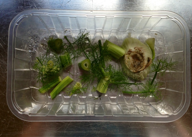 ménage á trois of radish, mushroom stems and garlic. tasty. oh there's a parsley leaf in the right corner which doesn't seem to be invited. oi